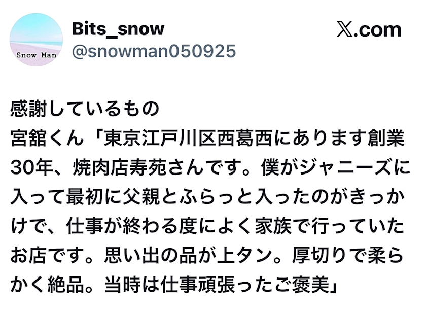 SnowMan館様行きつけの焼肉店🥩
