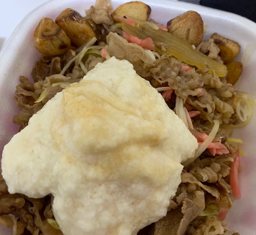 山かけ牛丼にニンニクトッピング