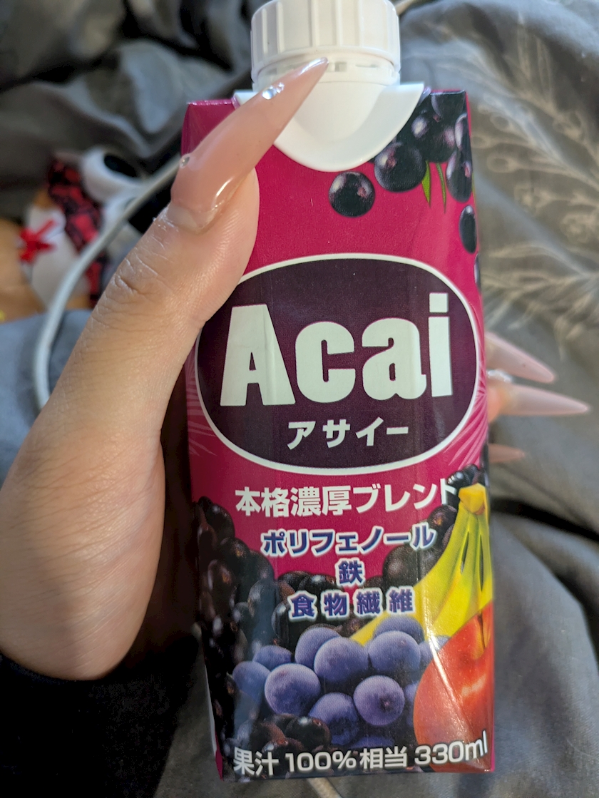 今日は、布団でジュース飲みながら