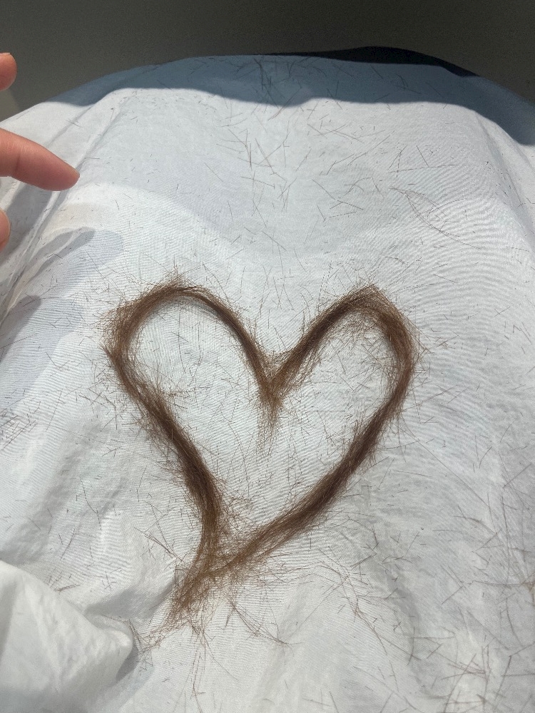 切った髪で🩵つくったんやけどさ、、、