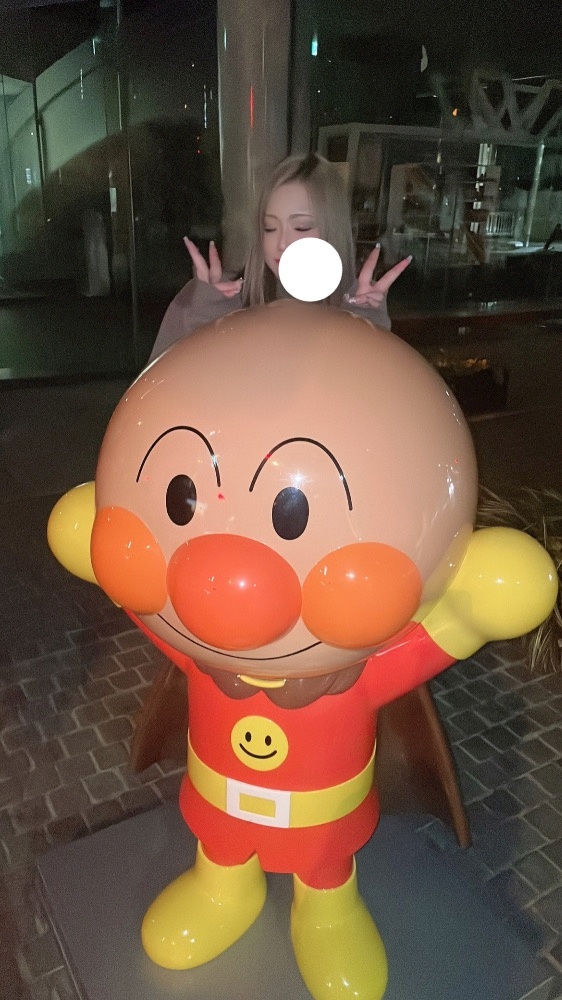 まめっちとアンパンマンの置物見えて
