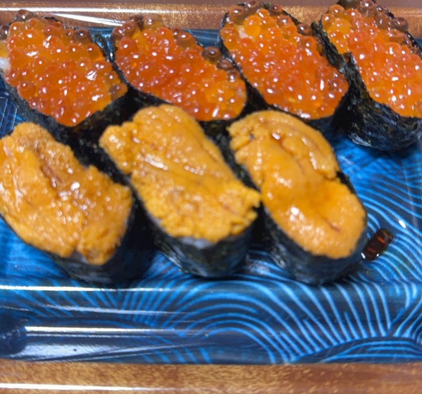 写真を撮る前に待ちきれずうにを一巻食べていました、、笑