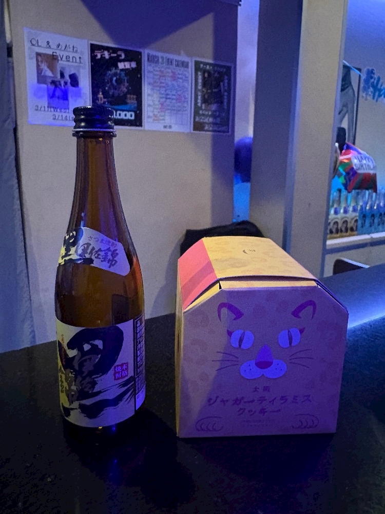 私は鹿児島の黒伊佐っていう芋焼酎のミニボトル、