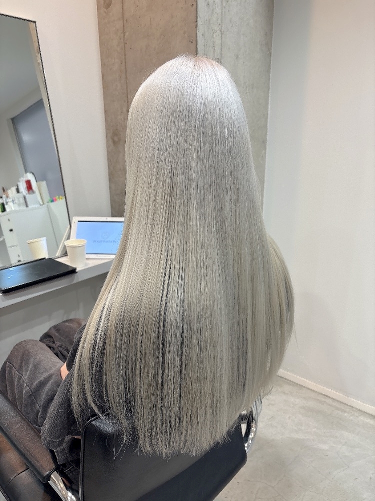 半年近くかけてこまめにブリーチをして育てた髪色…