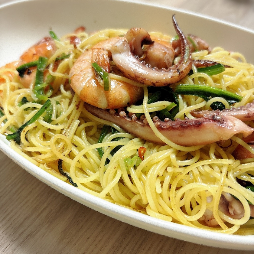 魚介のペペロンチーノ🦐🐙