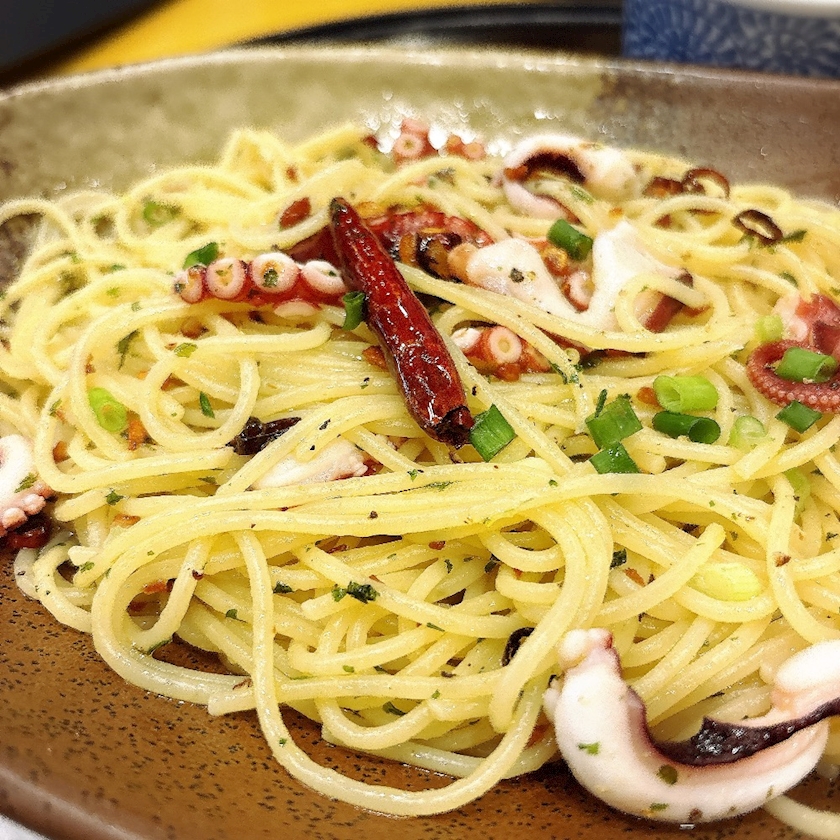 五右衛門のタコのペペロンチーノ🐙