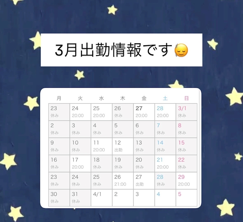 やせあせお 上から読むか、したから読むか💦 3月出勤情報~