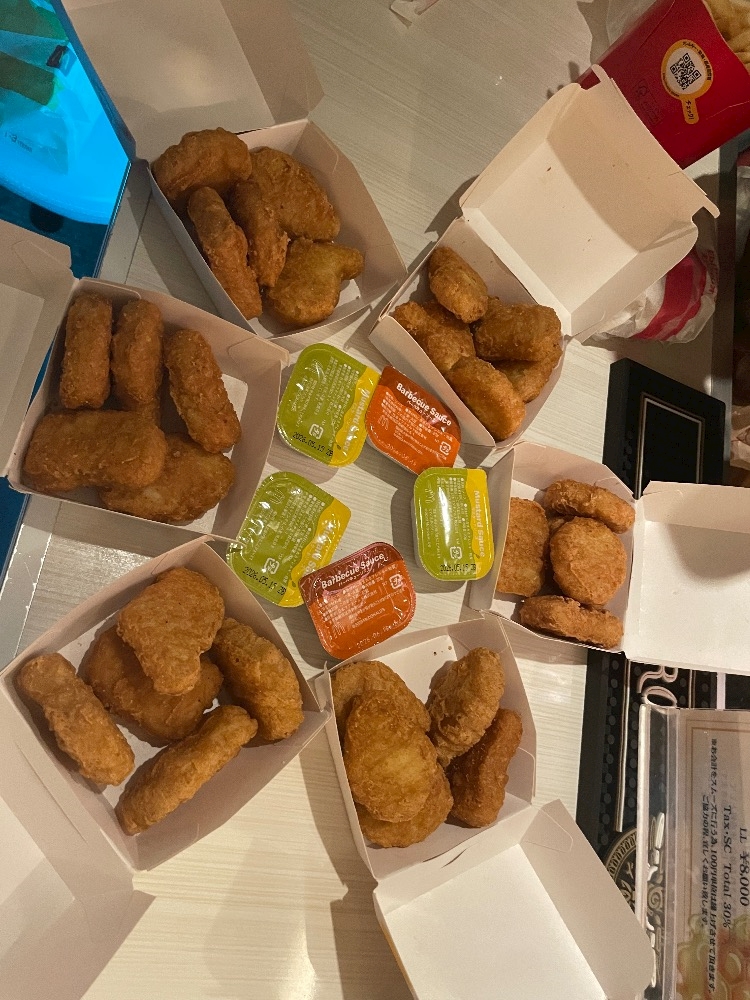 テーブルの上ナゲットだらけでめちゃくちゃ面白かった😂