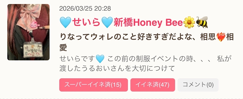 名前:🎀りな🎀 新橋Honey Bee 🍯🐝💛✨