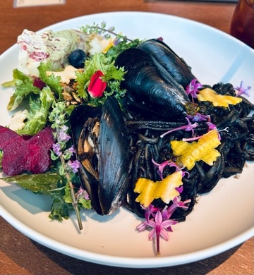コラボカフェではイカ墨のパスタを食べました。