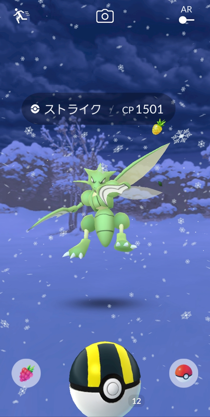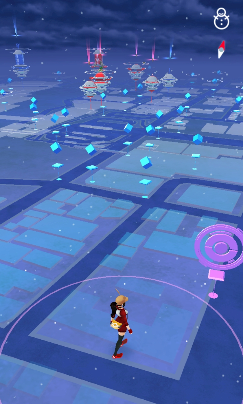ポケモンGO起動したら、まさかの雪が降ってました❄