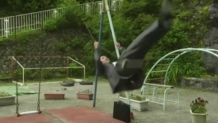 ブランコを漕いでる