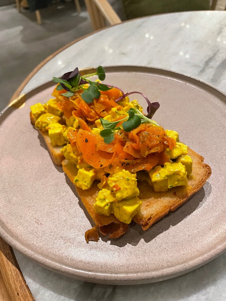 トーストのようなものの上に、卵に見立てた豆腐がのっているんですが、これが本当に美味しくて。