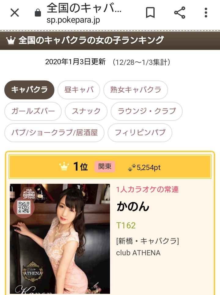 祝【全国1位】クラブアテナ「かのん」が全国1位になりました!