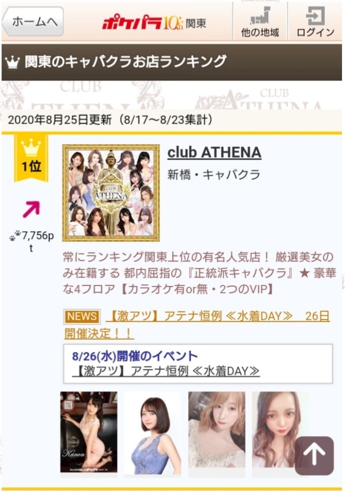 アクセスランキング『関東1位』になりました☆ - 女神アテナ - 新橋 キャバクラ・アテナ