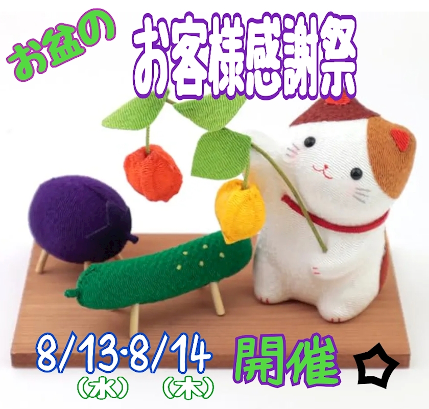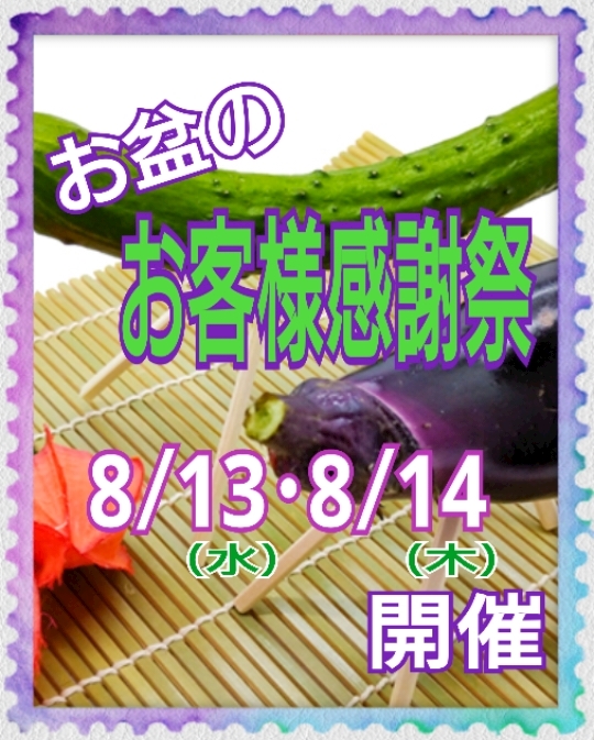 - 本日より開催☆ お盆の🍆《お客様感謝祭》🥒☆8/13(水)・8/14(木)
