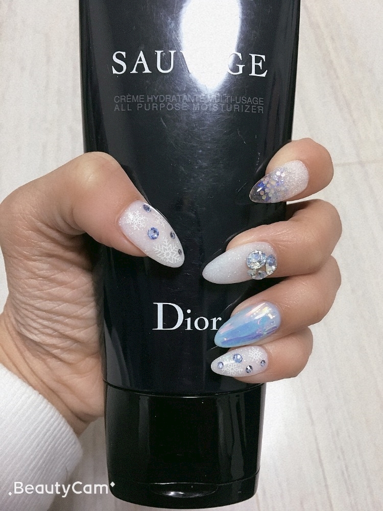 冬仕様に雪のネイル☃️❄️