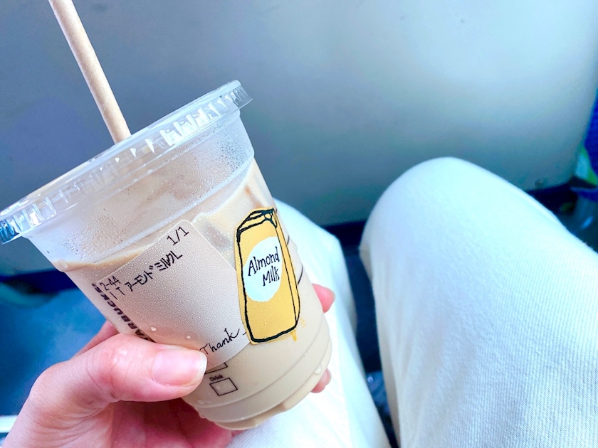 移動で飲んだアーモンドミルクラテ