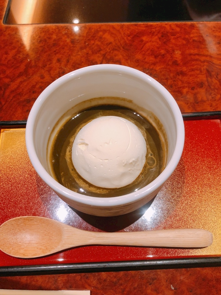 ほうじ茶のソースがかかった