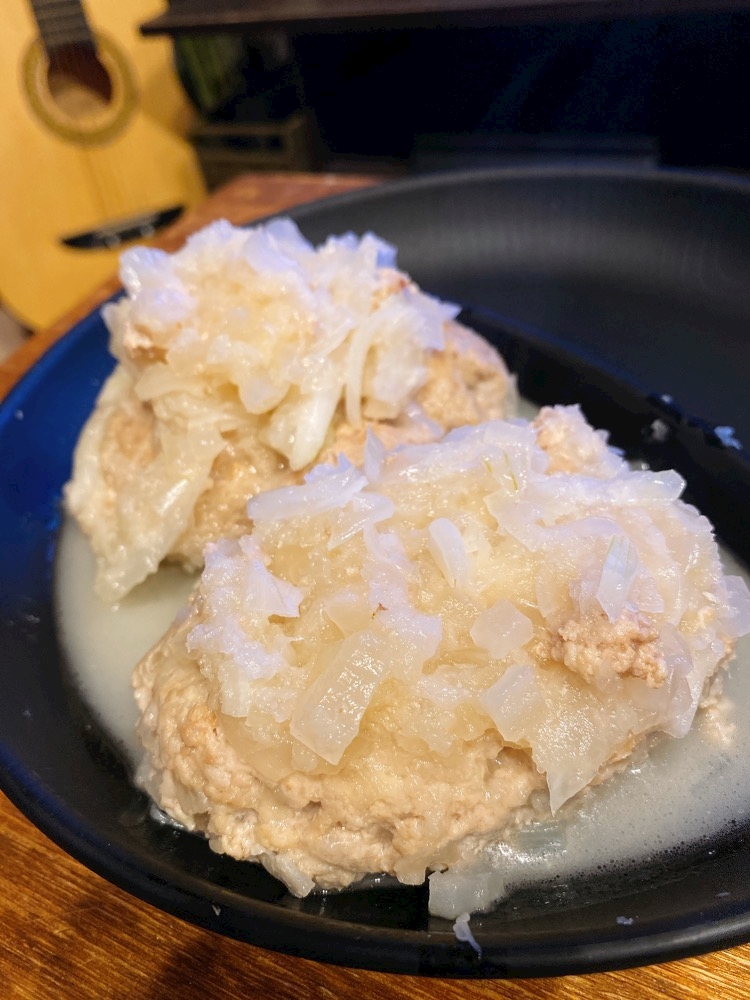 ハンバーグをその中で煮込むの☺️