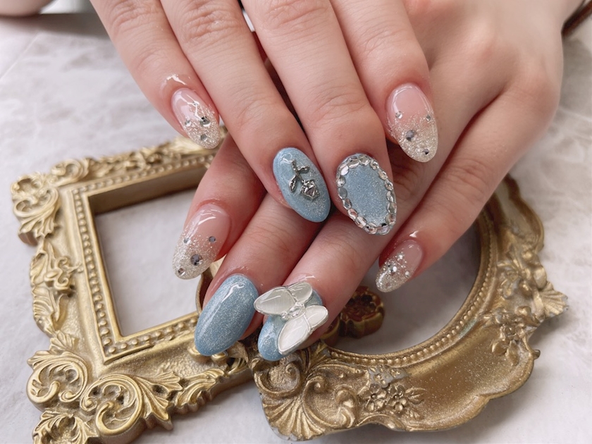 青とか水色のネイルしがち😂🤍