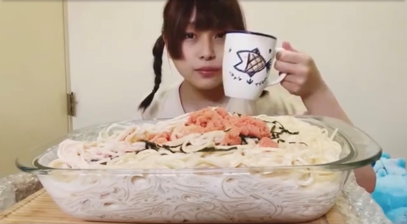 明太子クリームパスタ10人前を食べてるやつ🤤