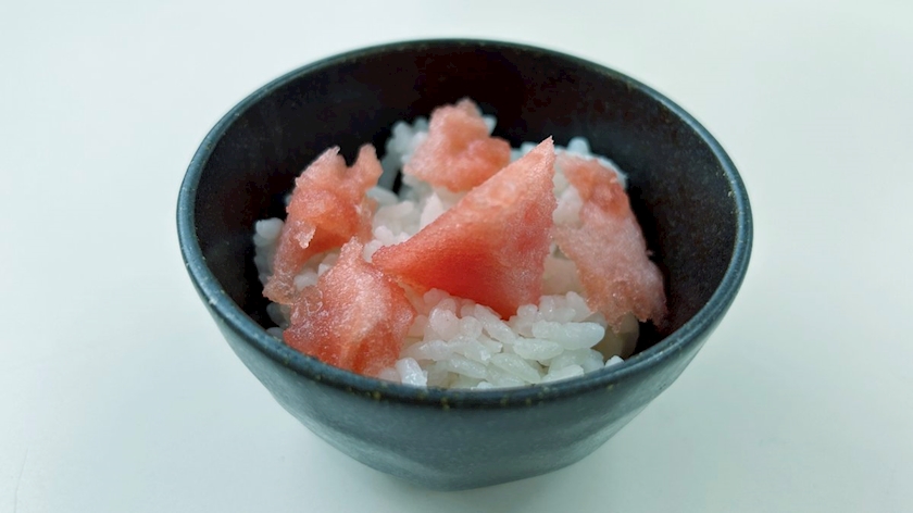 炊いたご飯にスイカを