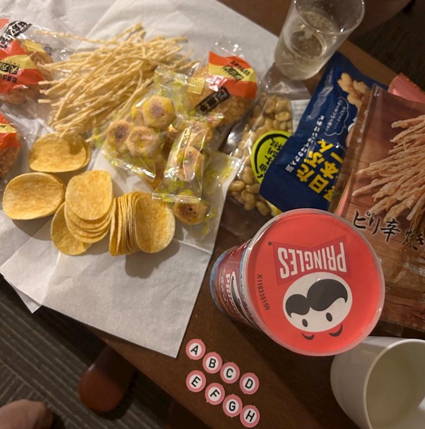 方のお部屋にお酒やお菓子を