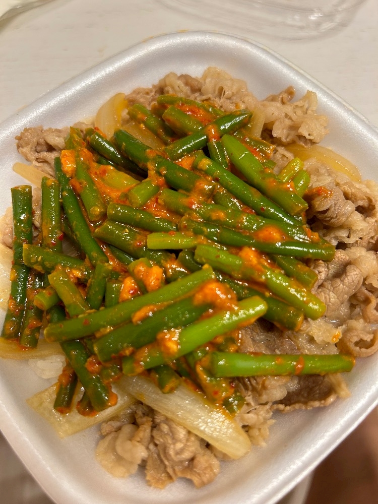 ニンニクの芽牛丼に🥹🩵