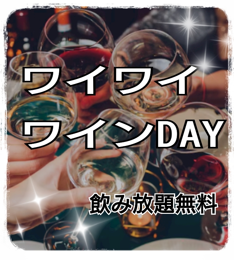 火曜日恒例【ワイワイ🍷ワインDAY】開催中☆ワイン飲み放題無料です♪