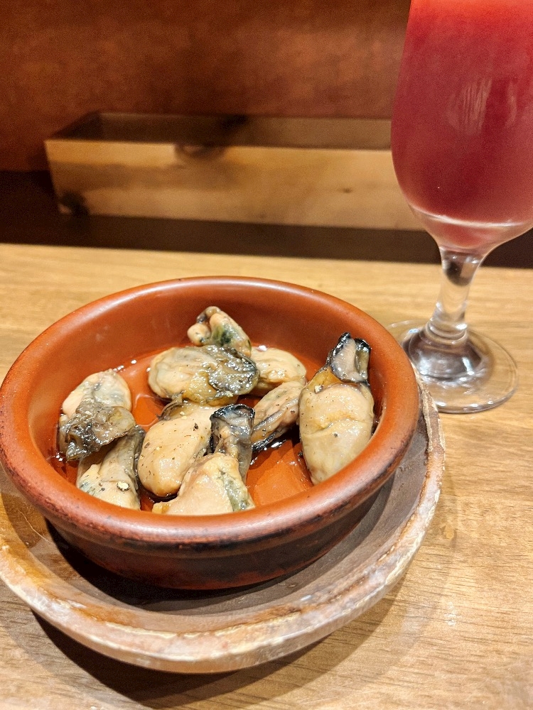 スペインバルで食べた牡蠣のオイル漬けがめちゃんこ美味しかった😋