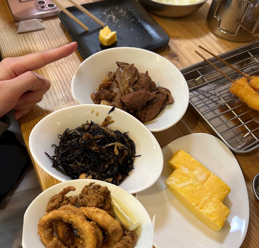 奥から、牛すじ、ひじき