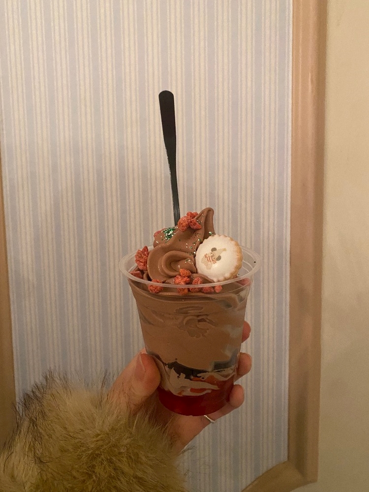 あとは入口付近のアイス屋さんでサンデーとホットチョコレート🍫