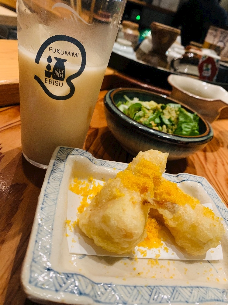 たけのこの天ぷらにカラスミかかってるやつ🥺