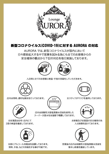 本日もコロナ対策を万全に行い営業します! - AURORA - 新橋 ガールズバー・アウロラ
