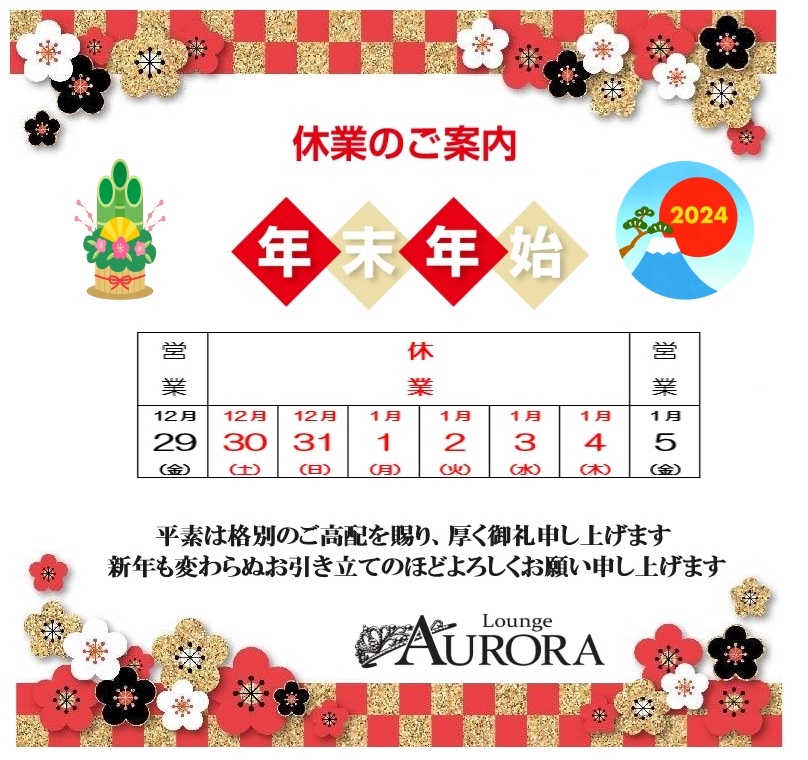 ☆年始年始のお知らせ☆ - AURORA - 新橋 ガールズバー・アウロラ