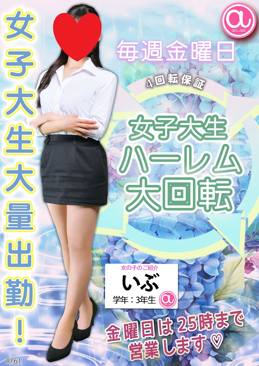 - 6/27(金)女子大生ハーレム大回転♪美女JD選び放題!!