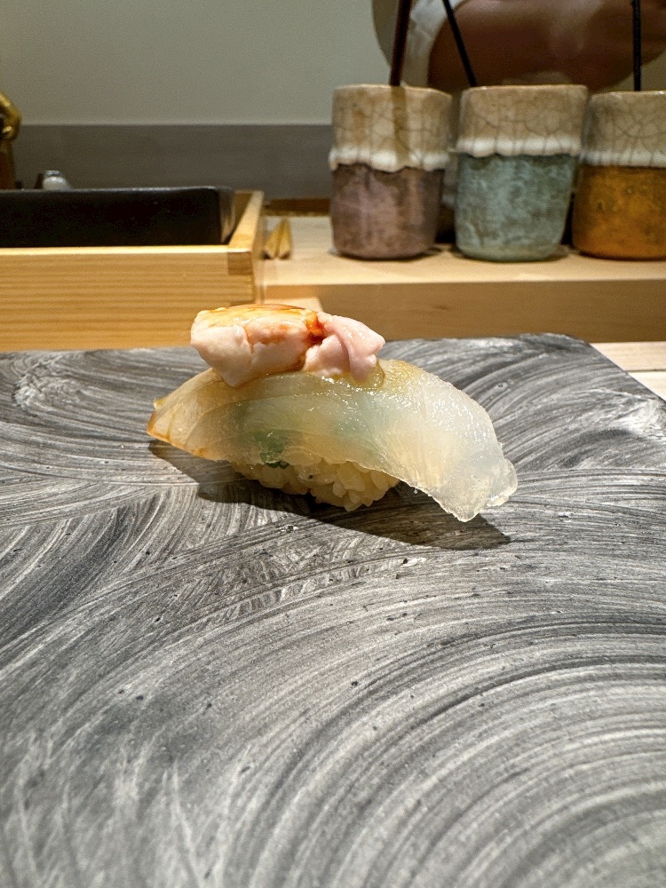 これは詳しい説明は忘れてしまいましたがとりあえず美味しかった握り⬇️あん肝?がのっていてあん肝は今まで食べずにいましたが克服しました!!
