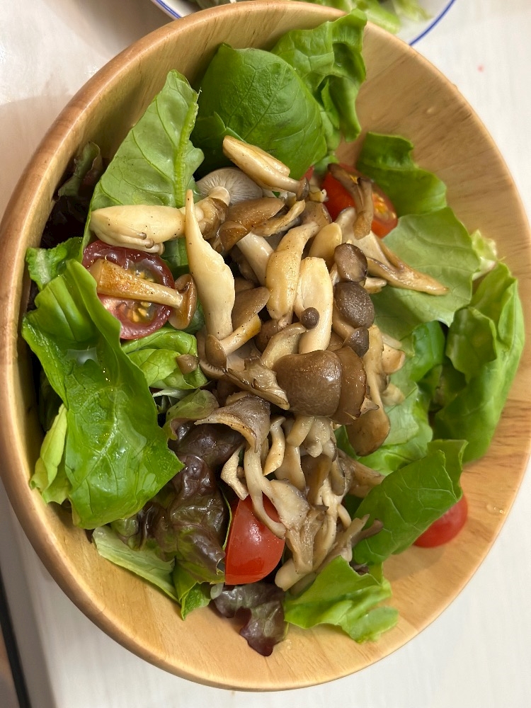 最近キノコサラダにハマりすぎててドレッシングはかけてないけど、