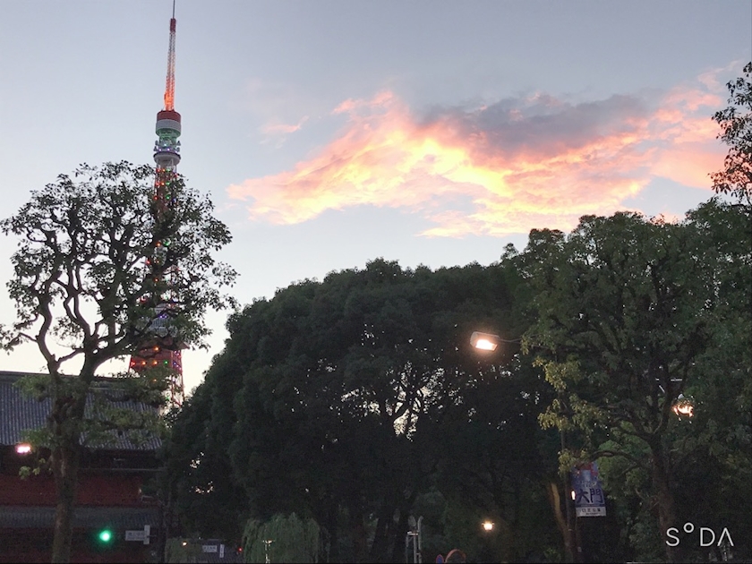 東京タワーと夕日が