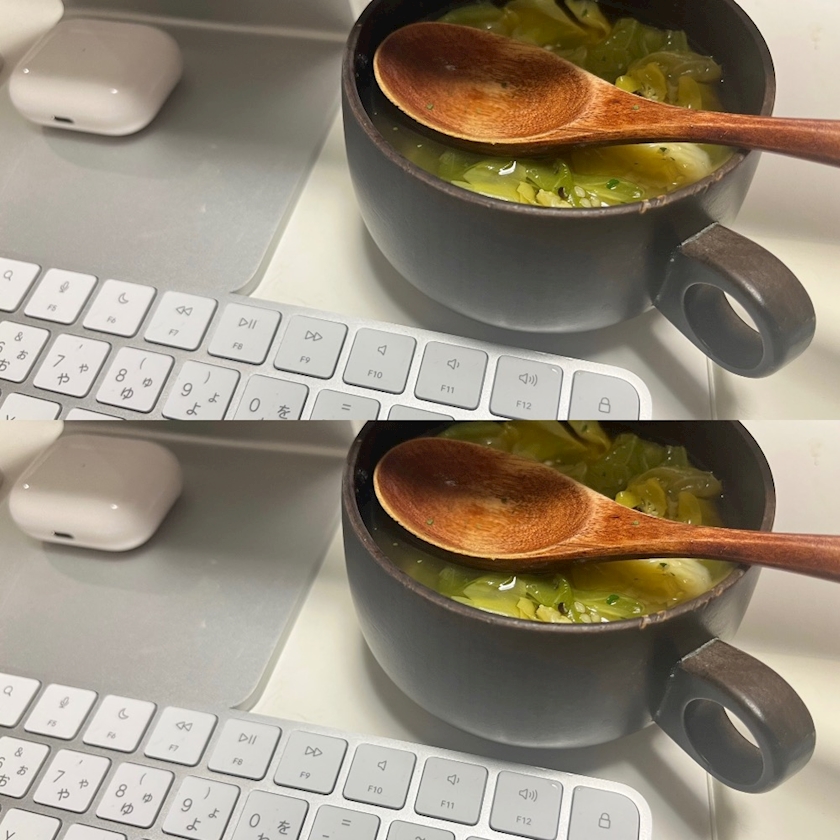 コンソメスープ食べながら