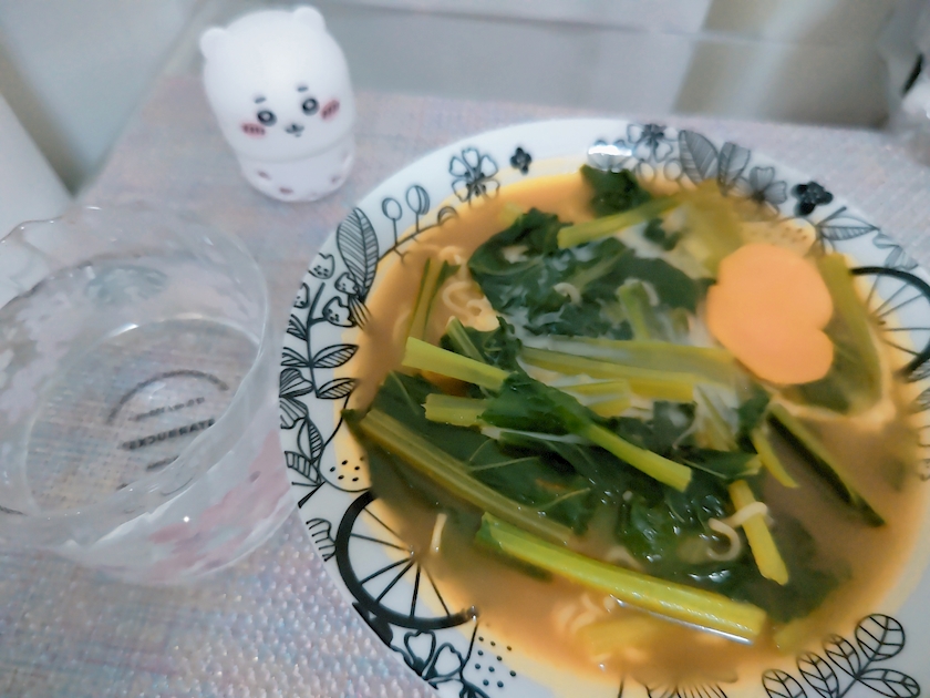 ちいかわのラーメンに頂いた小松菜♥