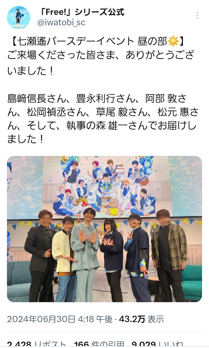 ️🩵七瀬遙 生誕祭🎉2024🎂🥳👏️🐬🩵