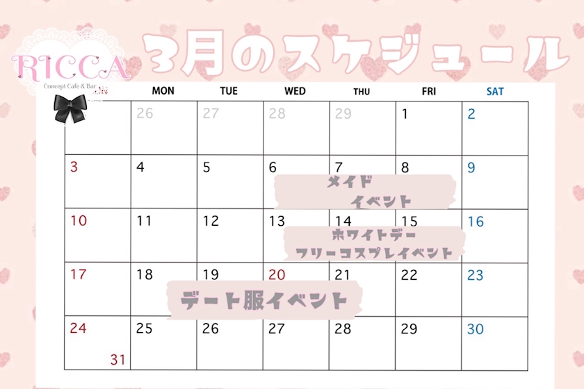 🤍3月のイベント情報🤍 - 内勤スタッフ - Cafe&Bar RICCA・リカ - 池袋東口のコンカフェ