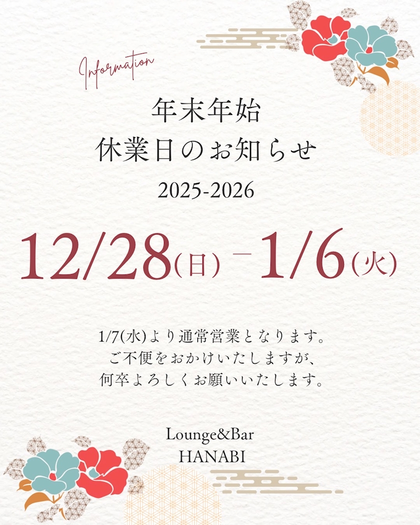 HANABIは12/27(土)まで営業してとります🫶