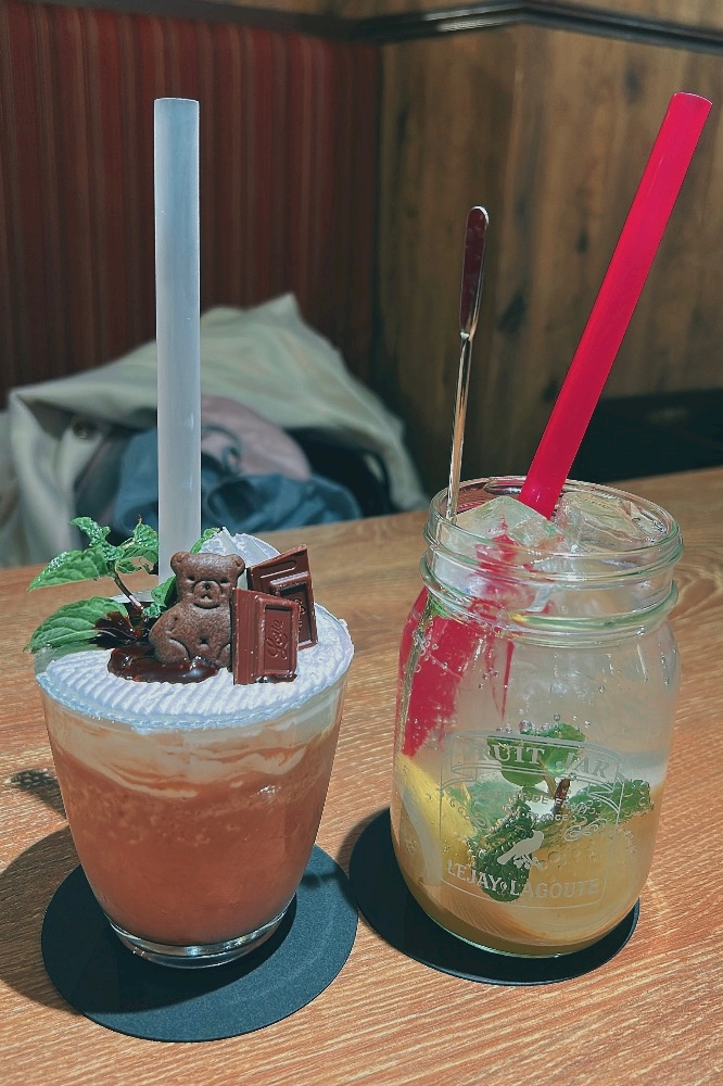 私は初めて飲むジュースを頼んで(右)めちゃくちゃただのジュースかと思ってたからオシャすぎてびっくり仰天ー😭💦💦💦
