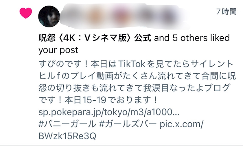 TikTokを見てたらサイレントヒルfのプレイ動画に紛れて呪怨の切り抜きも流れてきて無理すぎる⤴︎⤴︎⤴︎⤴︎っていうブログを前回書きまして、Xにも投稿しました!