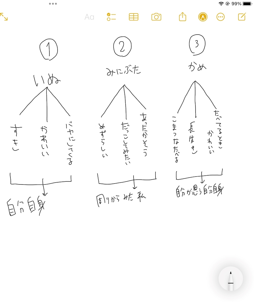 その下にあなたの好きな動物を3つ書いて、