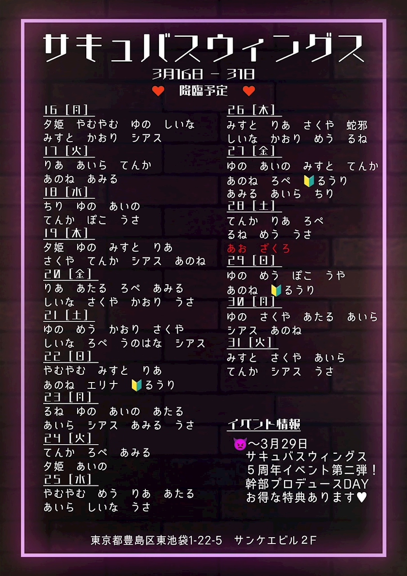 〜3/29 サキュバスウィングス5周年イベント!