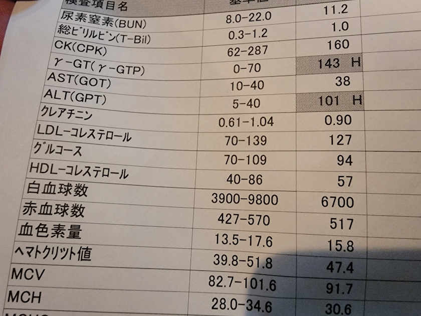 血液検査の結果が